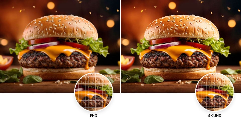 Koe jokainen yksityiskohta. 4K UHD -resoluutiolla on neljä kertaa enemmän pikseleitä kuin perinteisellä FHD-resoluutiolla, mikä tuottaa teräviä ja luonnollisen tuntuisia kuvia.