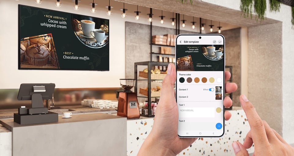 Saatavilla Android- ja iOS-laitteille, Samsung Business TV -sovellus mahdollistaa henkilöstön etäohjauksen, sisällön ajoituksen ja räätälöidyn sisällön esittämisen vaivattomasti. Sovellus sisältää myös useita valmiita mallipohjia näyttävän sisällön nopeaan luomiseen.