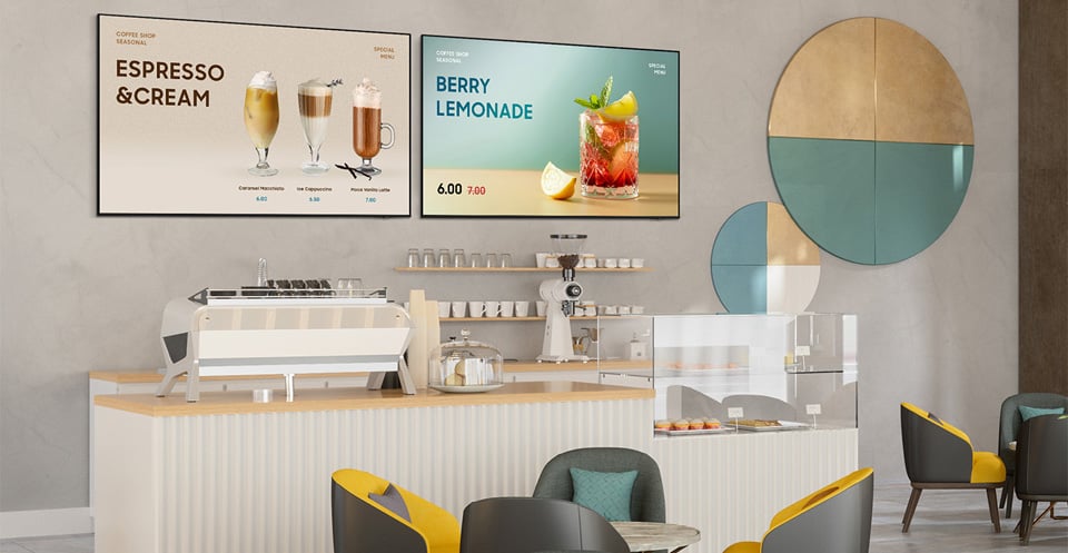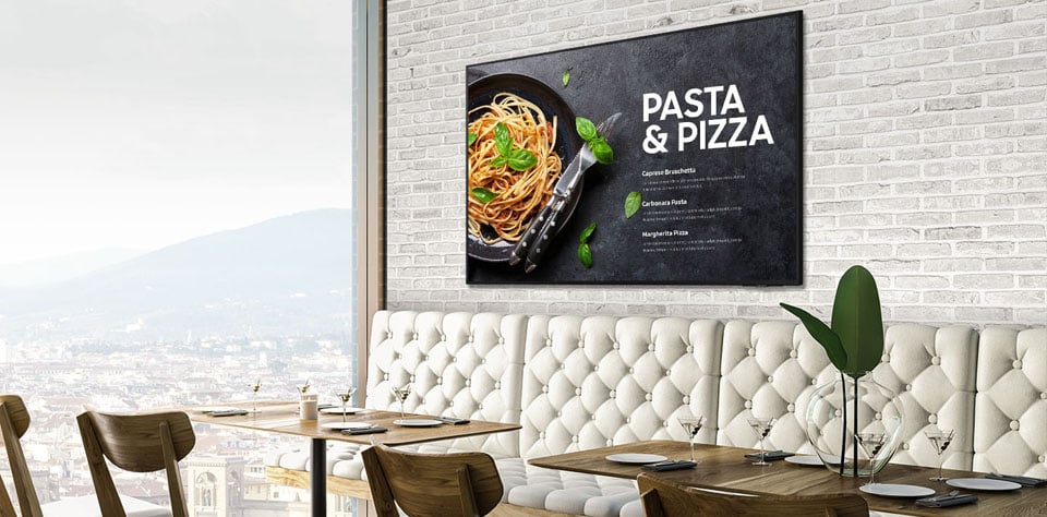 - Ohut, kolmisivuinen kehys, 16/7‑käyttöön luokiteltu rakenne ja kahden vuoden takuu tarjoavat luotettavuutta sekä helpon asennettavuuden myymälöihin, hotelleihin ja kokoustiloihin.